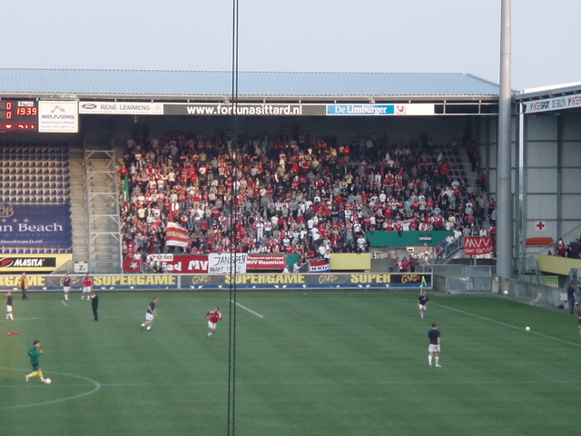 Als echte Trouwe Hond wil je natuurlijk ook eens in de keuken kijken van je medecollega’s. Zo zijn wij afgelopen vrijdag in Sittard terecht gekomen om de derby Fortuna Sittard – MVV te bekijken. En daar hebben we geen spijt van gehad. Wat een verschil vergeleken met ons cluppie. Om maar even wat verschillen te noemen: geen stewards op de tribune, bier rondom het stadion, fakkels afsteken zonder opgepakt te worden etc etc. Veel kijk- en leesplezier.