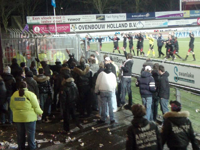 Als snel komt Omniworld op 0-1. Het doelpunt wordt door de plaatselijk jeugd even nabesproken bij het hekwerk.