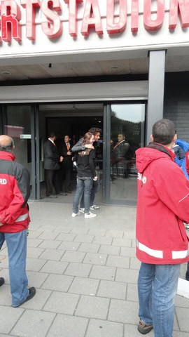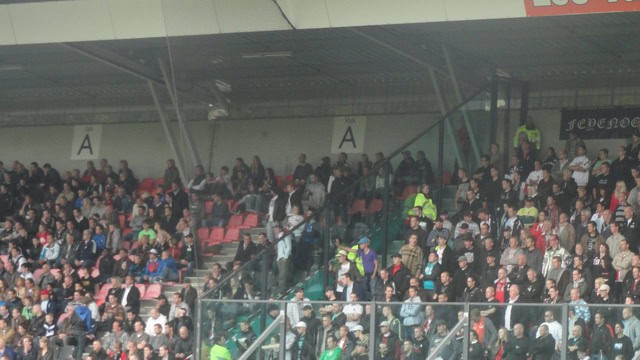 Paniek in de Goffert. Blijkbaar werden ze bij NEC een beetje vervelend van al die mensen van de catering die rond lopen tijdens de rust in plaats van op de grond gevallen broodjes te verkopen. Dus gaan in de rust alle hekken dicht. Wij hebben van NEC ooit 2 dienstkaarten gekregen om foto’s te maken tijdens de rust. Maar gisteren stonden wij dus vast op de Goffertribune. Niet alleen wij hadden er last van, maar onze collega’s van rood groen zwart en Forzanec ook. Zelfs de deelnemers van latje trappen konden geen kant meer op. Er is ons beterschap beloofd.