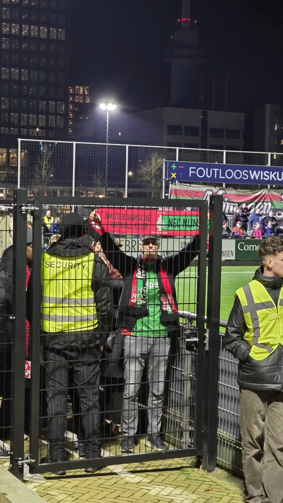 We mochten zowaar een plukje fans meenemen en die hoorde je dan ook makkelijk boven de lokale Ajax-fans uitkomen. Het thuispubliek leek veelal te zijn opgetrommeld van de lokale basisscholen en in plaats van bierbekertjes gingen er vanavond een hele zwik wedstrijdsjaaltjes het veld op. In elk geval doen die een stuk minder pijn.