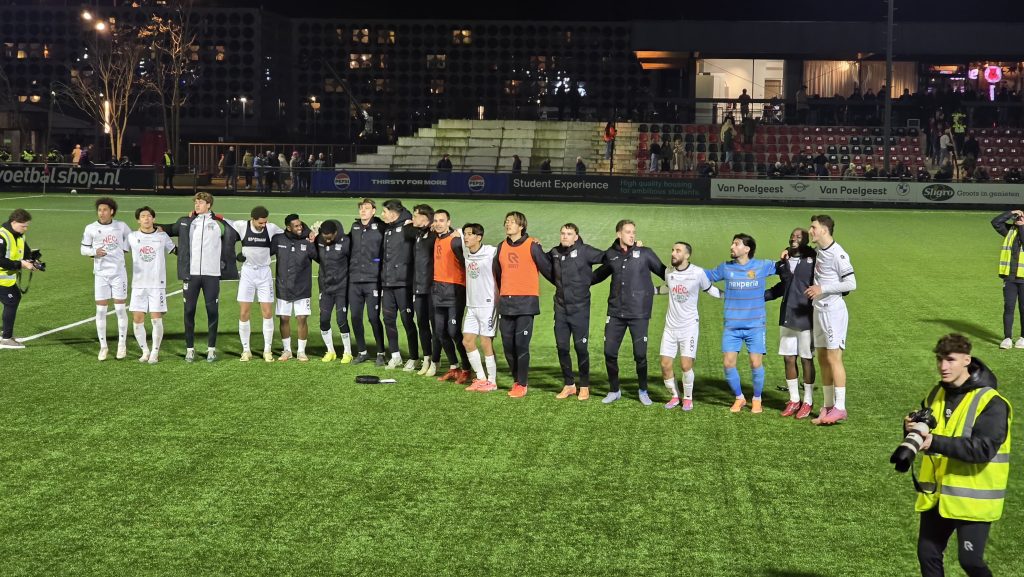 NEC treft deze week twee Amsterdamse ploegen. Zaterdag komt immers Ajax op bezoek, dat na de zege op Feyenoord dit weekend de 3e plek overnam van ons NEC. Maar eerst was er nog de doordeweekse bekerpot tegen de Amsterdamsche FC op sportpark Goed Genoeg. Over deze wedstrijd kunnen we eigenlijk kort zijn en dus houden we dit verslag ook maar beknopt. Meer verdiende het duel namelijk ook niet. Net als tegen Rijnburgse Boys koos Schreuder vanavond wederom voor veel bankzitters in de basis en wederom lieten die bankzitters grotendeels zien waarom ze bankzitters zijn. Het was namelijk opnieuw een draak van een wedstrijd waarbij de meeste NEC’ers flink door de ondergrens zakten, al was het uiteindelijk allemaal wel net Goed Genoeg. Gelukkig wisten we na wat wissels de boel in het laatste kwartier weer recht te trekken en gaan we met 1-3 door naar de volgende ronde.