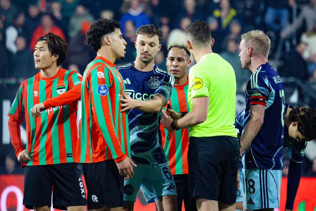 Lindhout strooide ons even zand in de ogen na zijn beslissing om de VAR niet te volgen en Linssen ‘slechts’ geel te geven, maar toen Ajax het moeilijk begon te krijgen kwam zijn ware aard toch weer boven en trok hij een schandalige rode kaart voor Ouaissa. Daarna regende het gele kaarten aan beide kanten. Linssen en Ouaissa zullen geschorst zijn tegen FC Utrecht na de winterstop, tenzij Ouaissa’s kaart geseponeerd wordt. In een rechtvaardige wereld zou dit zonder twijfel gebeuren, maar met de KNVB-maffia blijft het koffiedik kijken.