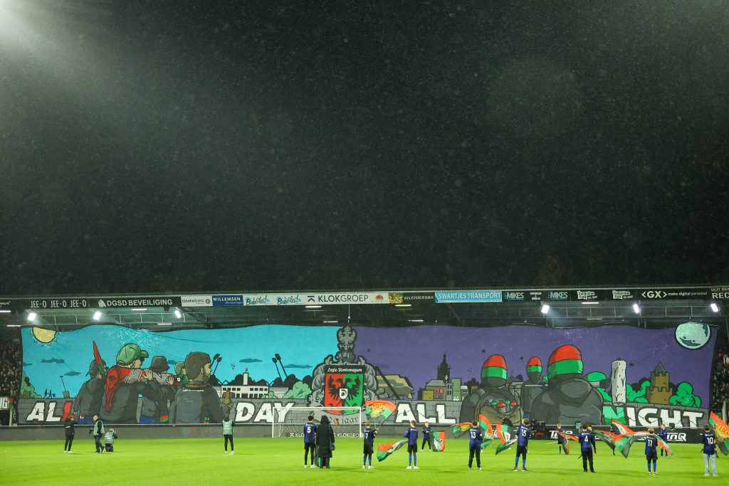 Was dit de eerste keer ooit in een stadion dat er live een spandoek werd gemaakt? Geen idee, maar laten we gewoon maar zeggen van wel. De mannen van Legio vierden hun 20-jarig bestaan met niet alleen een fraai spandoek voorafgaand aan de wedstrijd, maar ook met het schilderen van een dundoek in vol zicht van de ESPN-camera’s terwijl de wedstrijd in volle gang was. De tweede helft werd bovendien ‘afgetrapt’ met een fraai vuurwerkspektakel. Bedankt heren voor al het moois van de afgelopen twintig jaar en gefeliciteerd met deze mooie mijlpaal!