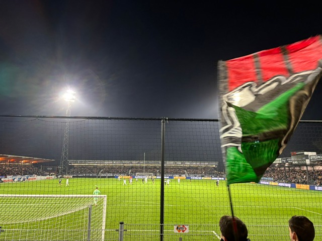 Het uitvak, dat bij Telstar een hele tribune achter één van de doelen beslaat, zat weer helemaal vol natuurlijk. Net als de rest van het stadionnetje. Knap wat ze daar in korte tijd hebben neergezet.