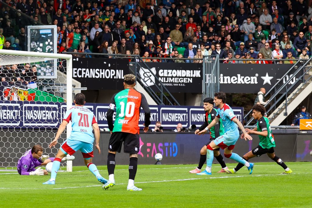 Zeven minuten extra tijd werden bijgetrokken. Daarin kreeg Danilo een werkelijk enorme kans op de gelijkmaker na goed voorbereidend werk van Onal, maar de Braziliaan schoot de bal van dichtbij huizenhoog over. Waar het helemaal over en uit leek voor NEC, daar wist Onal in de slotsecondes opnieuw Danilo te vinden, die ditmaal gelukkig wel trefzeker was en de 1-1 binnen werkte.